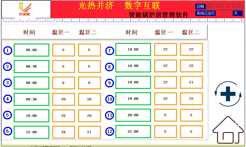 参数设置完成后,点击按钮进行测试,一般建议能耗70%左右。另,温区一、温区二改为零后,时间序列温控生效,此功能节能效果明显。
