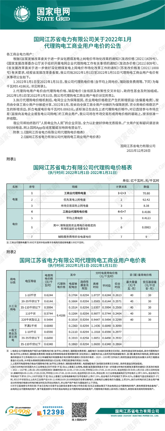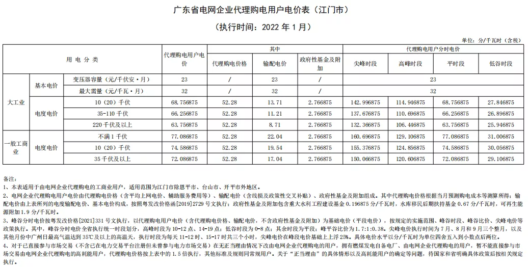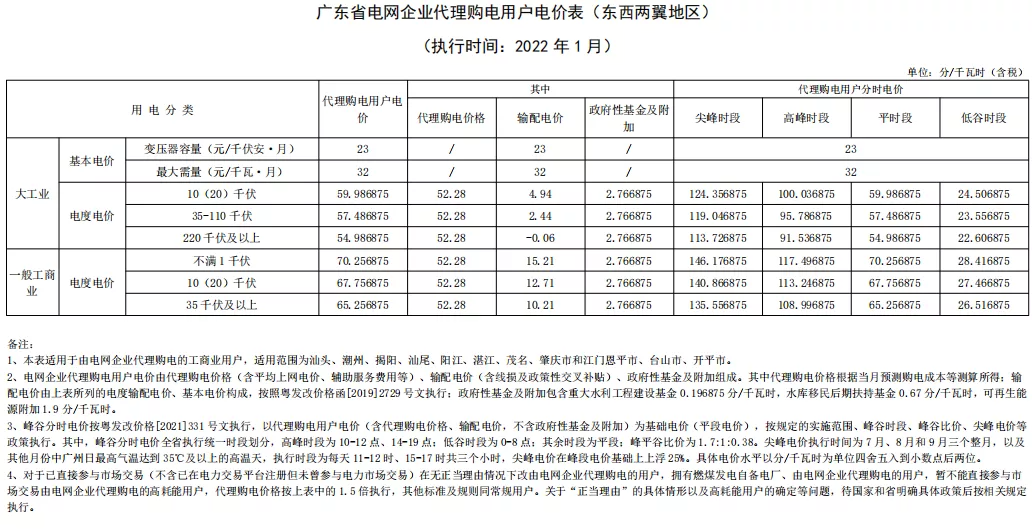 截至目前,除广西、云南外,全国其他地区均已发布2022年1月电网代理购电价格表。除青海外,其余地区2022年1月电网代理购电价格均高于燃煤基准价,浙江、山东、河南、上海、天津上涨幅度超过20%。具体如下表所示。
